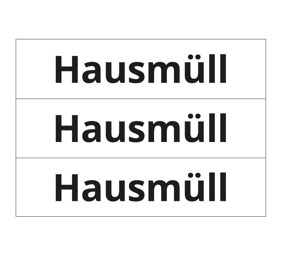 Napis: Hausmüll Wymiary: 297x70mm Liczba sztuk na arkuszu: 3