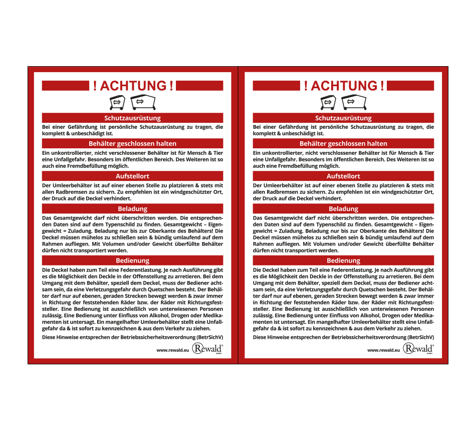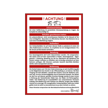 „Warnhinweise für Umleerbehälter”, 210x150mm, 2szt./arkusz