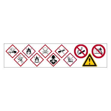 Napis: Warnhinweise für Müllpressen Wymiary: 650x150mm Liczba sztuk na arkuszu: 1