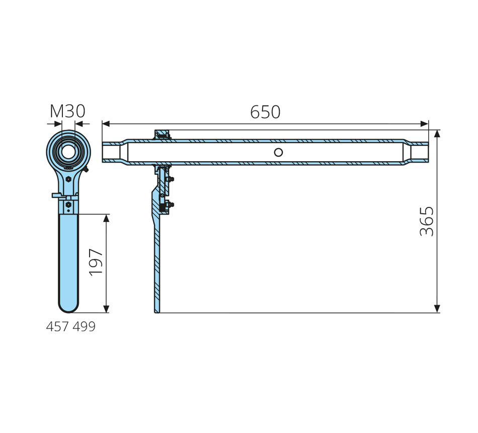 Wymiary: M30x650x365mm, uchwyt L-197mm Wykonanie: ocynkowany Zastosowanie: do stacjonarnych pras na odpady