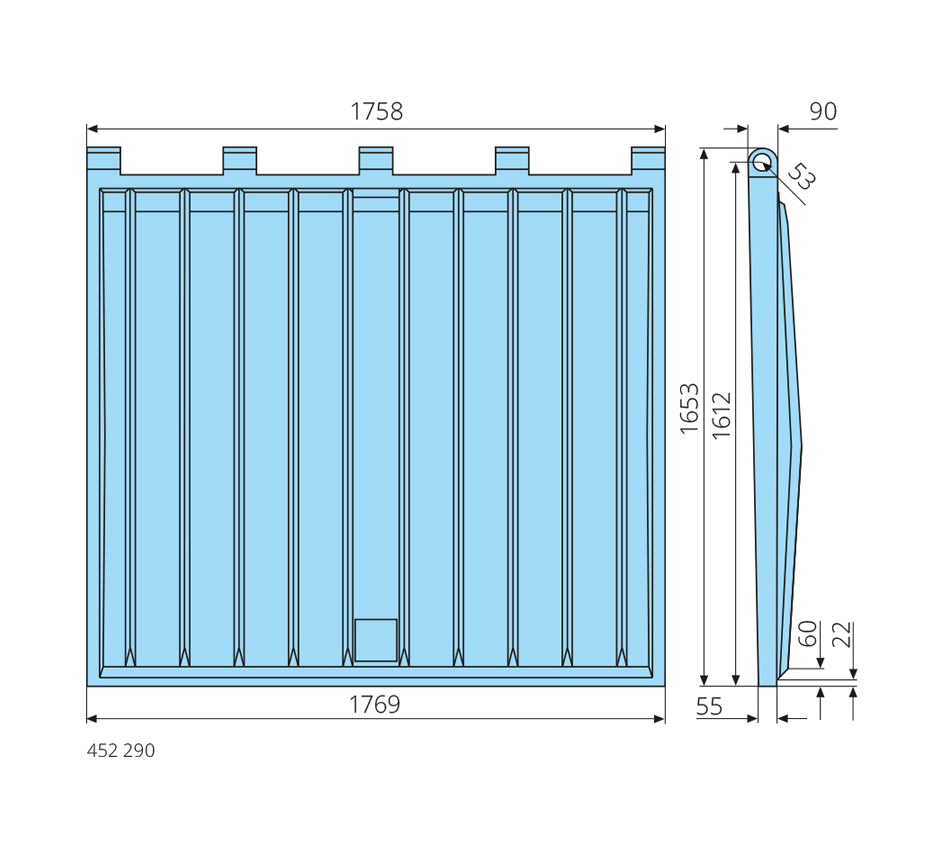 Wymiary: 1769x1653mm Wykonanie: tworzywo sztuczne, bez otworów i tulei Kolor: RAL 9005 głęboka czerń
