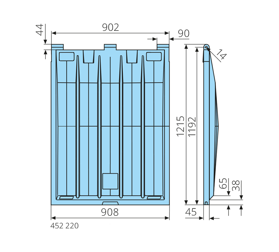 Wymiary: 908x1215mm Wykonanie: tworzywo sztuczne Kolor: RAL 9005 głęboka czerń