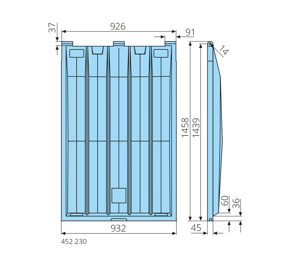 Wymiary: 932x1458mmWykonanie: tworzywo sztuczne Kolor: RAL 9005 głęboka czerń