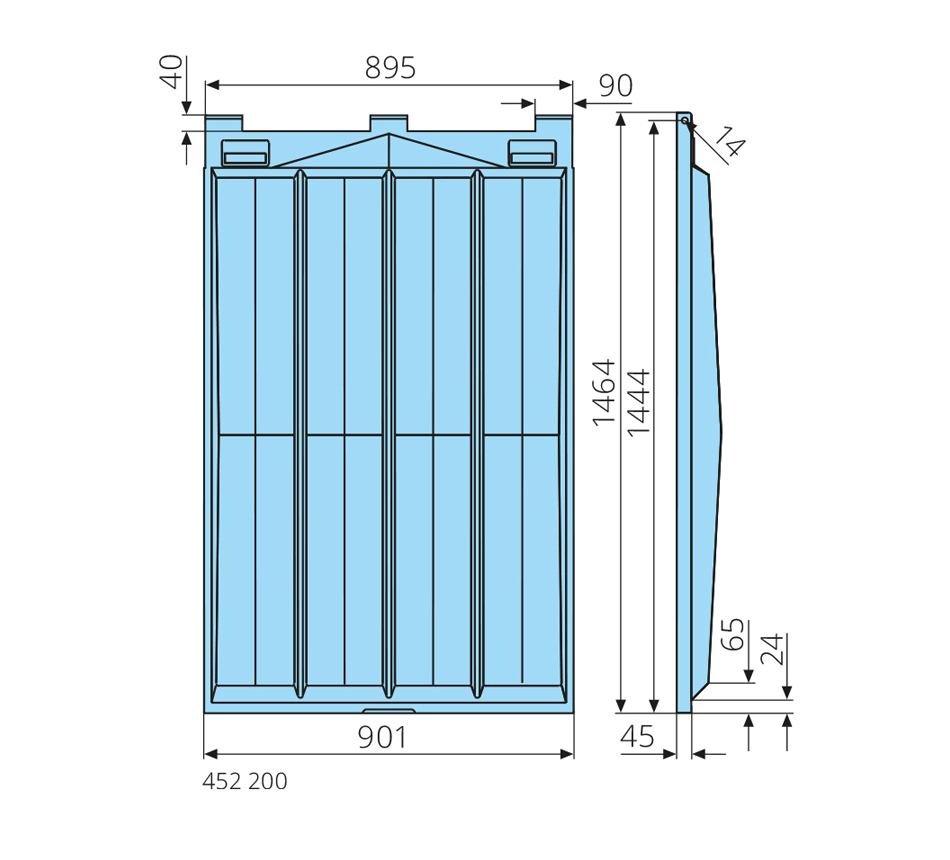 901x1464mm, tworzywo sztuczne, RAL 9005 (głęboka czerń)