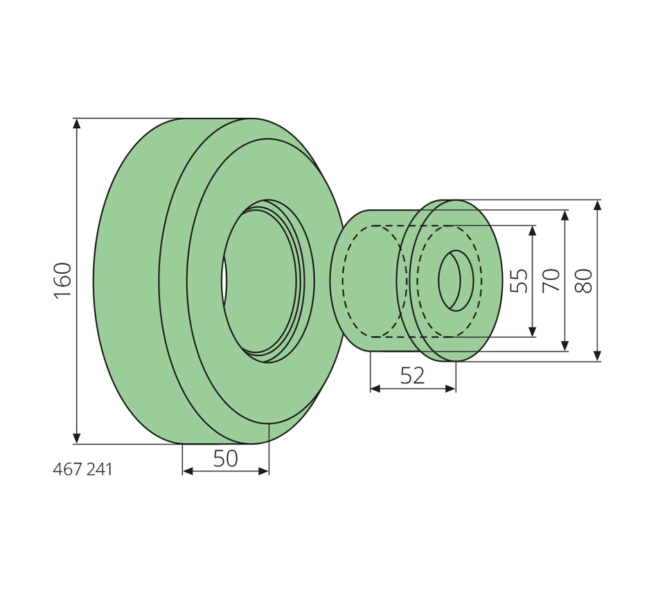 55-160-52mm, 42CrMo4, z łożyskiem i tuleją