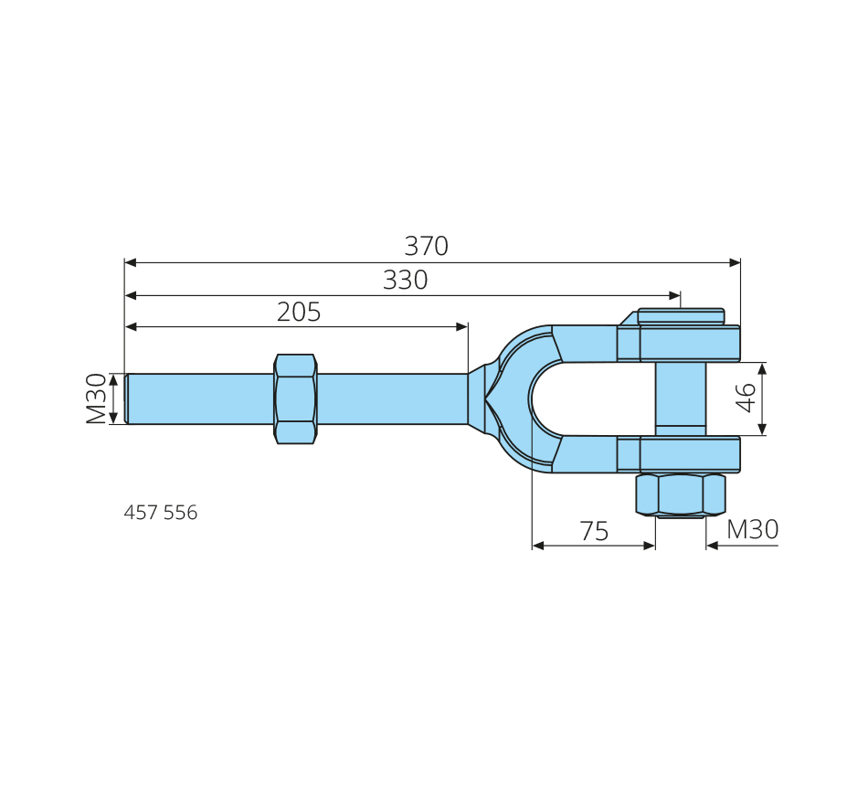 Wymiary: M30, L-370mm Wykonanie: ocynkowana, z końcówką blokującą, ze śrubami i nakrętkami