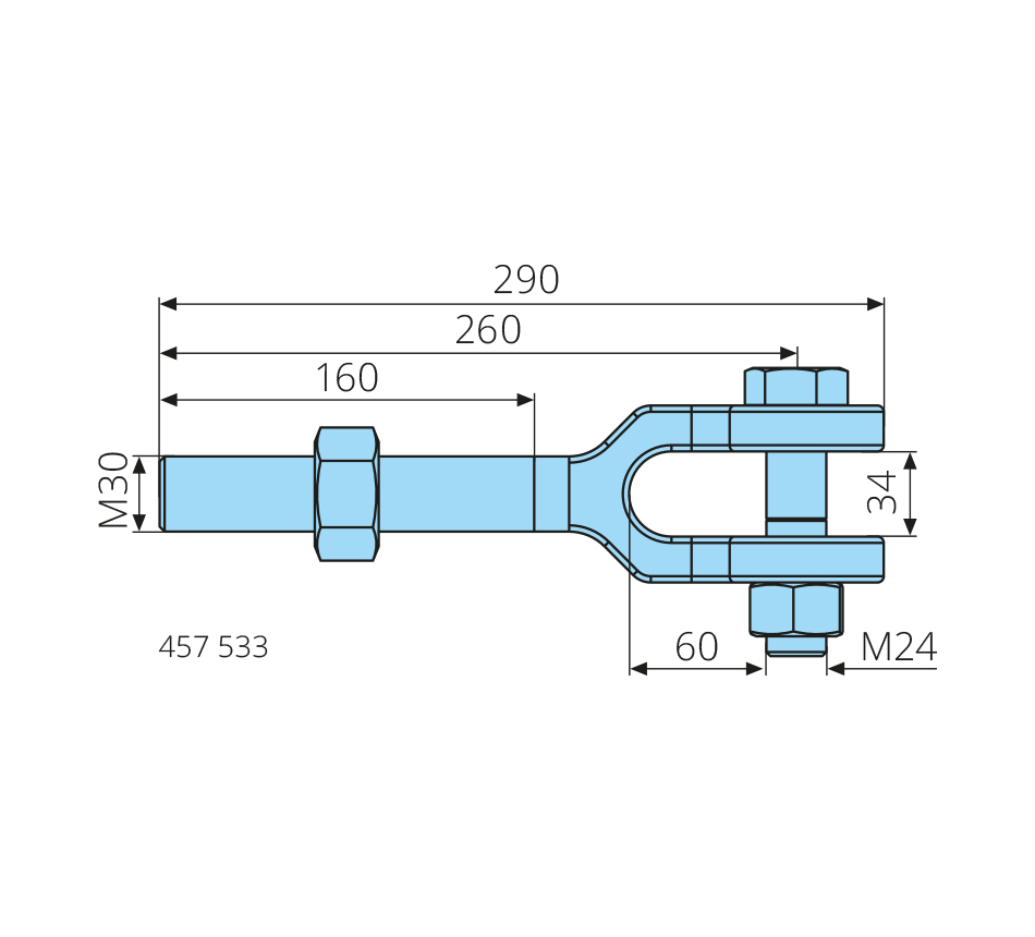 Wymiary: M30LH, L-290mm Wykonanie: ocynkowana, ze śrubami i nakrętkami