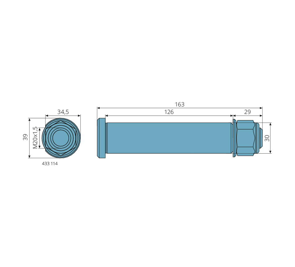 Wymiary: 30x163mm Wykonanie: z nakrętką i podkładką, hartowany Zastosowanie: do 433 120 /-090 Wariant: górny
