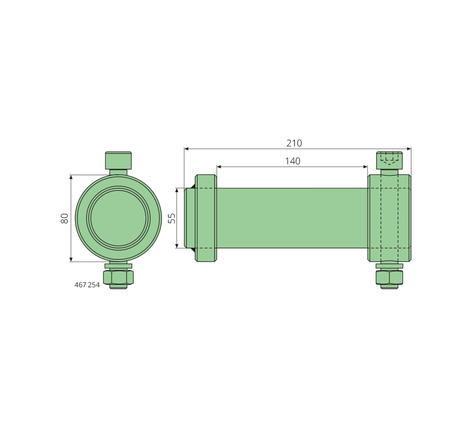 Wymiary: 55x210mm Uwagi: C45 Wykonanie: z pierścieniem ustalającym, śrubą, podkładką i nakrętką