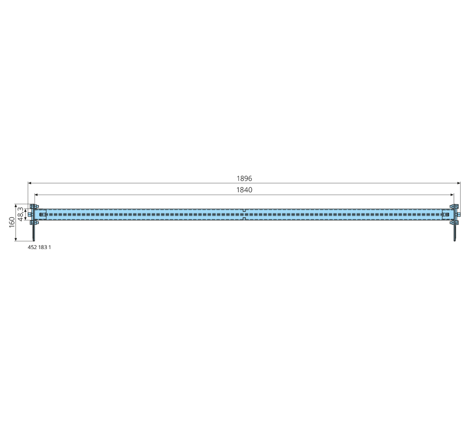 Wymiary: rura 48,3x1840mm Wykonanie: łącznik zewnętrzny, blachy i blokada centralna, płaskownik sprężysty 3x1790x30x3mm