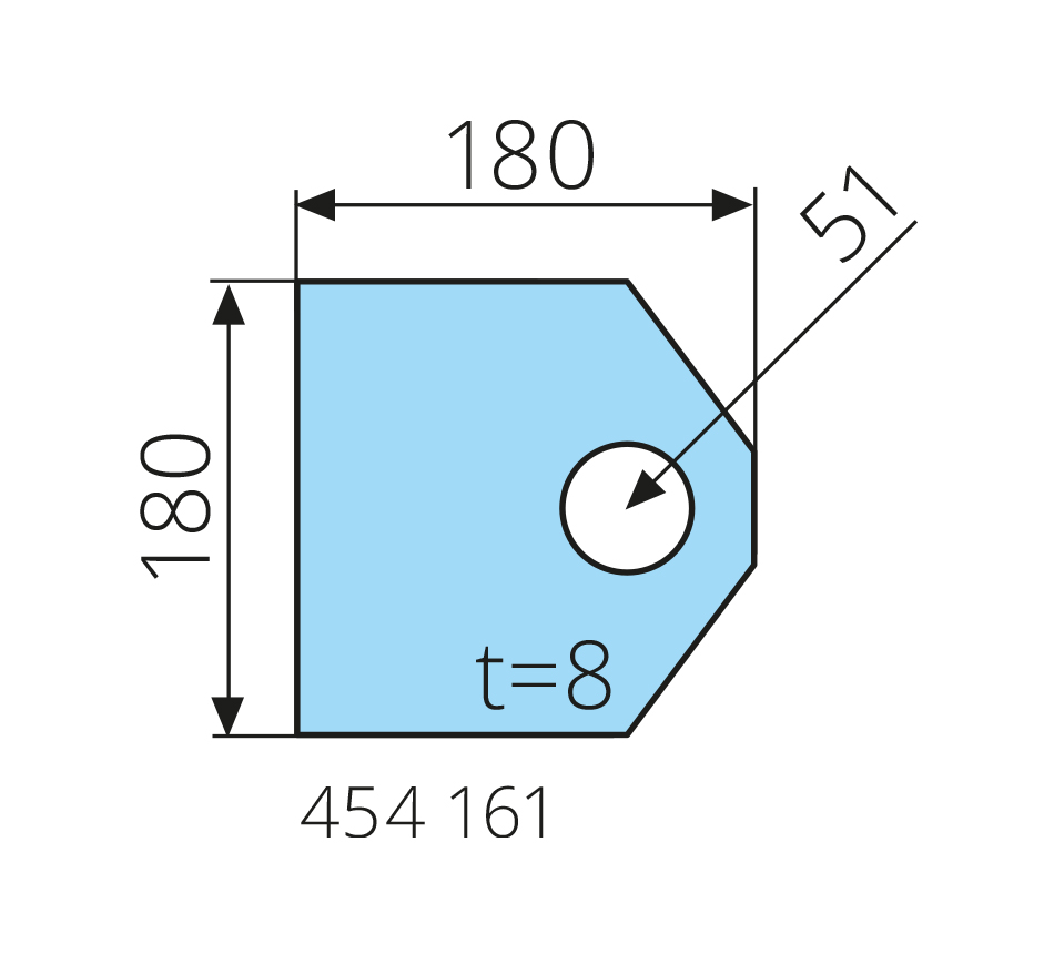 Wymiary: 180x180x8mm, d – 51mm Uwagi: S355J2