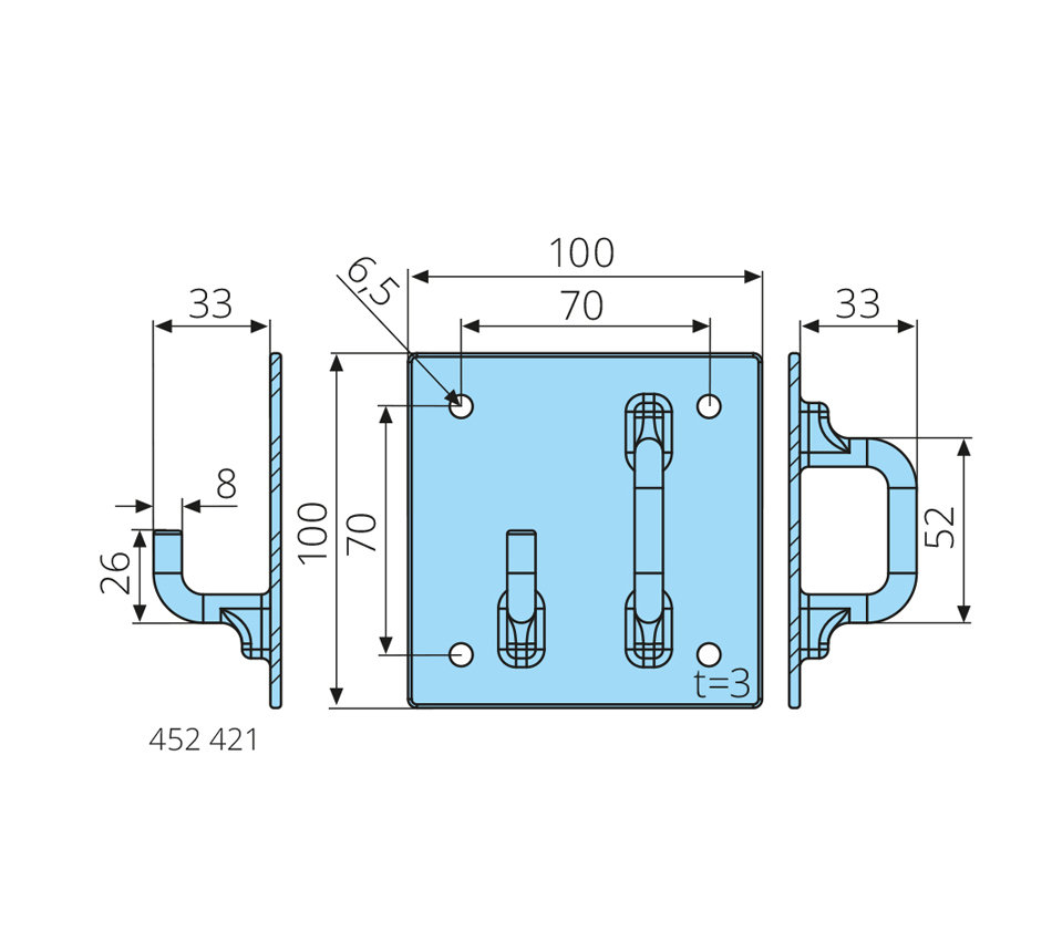 Wymiary: 100x100x3mm Wykonanie: ocynkowany