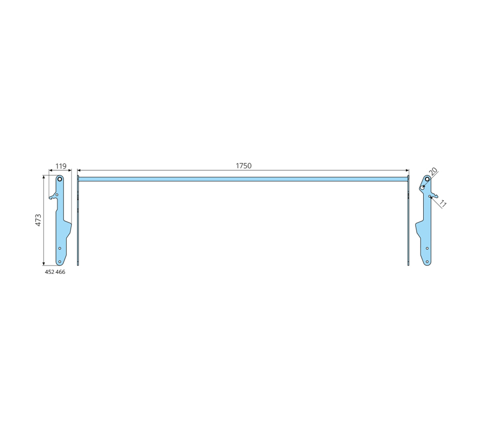 Wymiary: 1750x473mm Wykonanie: z rury okrągłej, ocynkowane