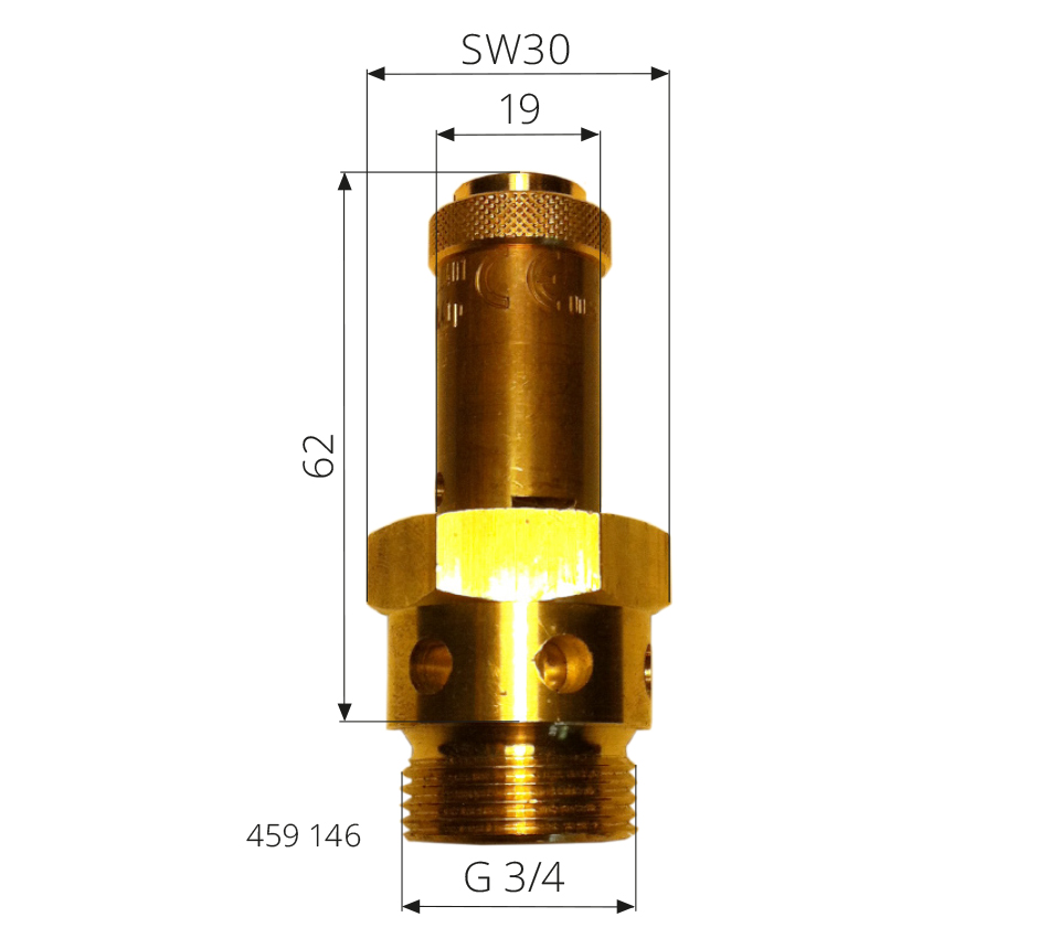 Wymiary: G 3/4” SW 30 Zakres ciśnienia: 0,51 bar Uwagi: TÜV SV 08-917 10 D/G Temperatura działania: -10/+180°C