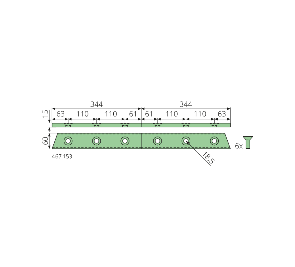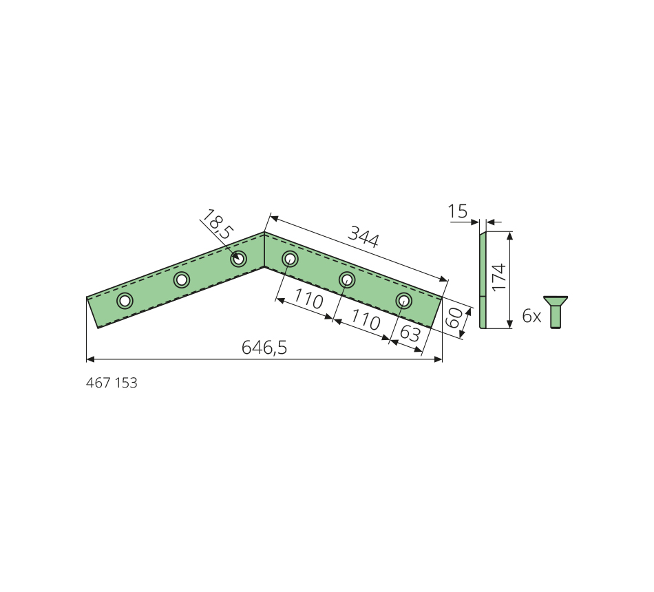 Wymiary: t – 15mm Wykonanie: 2-częściowy, z zestawem śrub Uwagi: X155CrVMo 12-1