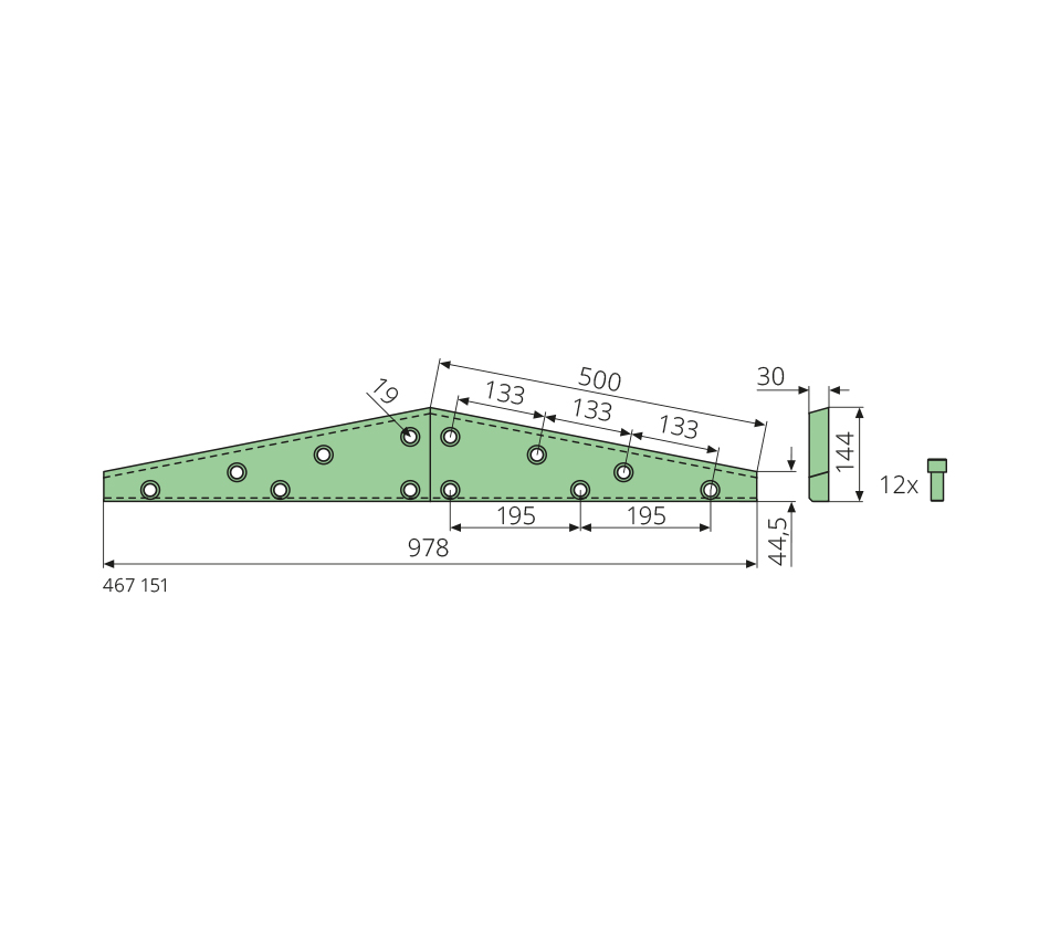 Wymiary: t – 30mm Wykonanie: 2-częściowy, z zestawem śrub Uwagi: X155CrVMo 12-1